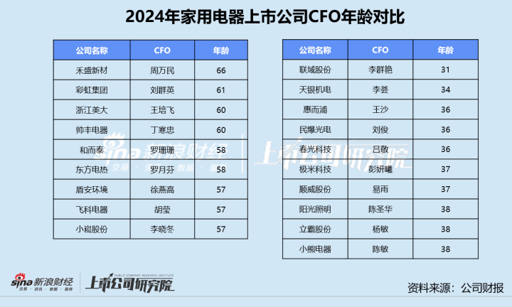 年龄最大的男性CFO为供职于禾盛新材的周万民,现已67岁。彩虹集团的女性CFO刘群英目前61岁,在公司担任董事、副总经理和财务总监。联域股份的董事会秘书、财务总监李群艳和天银机电的副总经理、财务总监李荟都为“90后”女性,年龄在35岁以下。